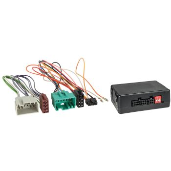 Kombinert rattfjernkontroll-adapter og ISO-overgang med elektronikk som kommuniserer mellom bilens elektronikk og en uorginal bilradio som støtter forskjellige funksjoner. Se liste over funksjoner adapteren bevarer i bilen ved bytte av radio. Passer følgende bilmodeller: